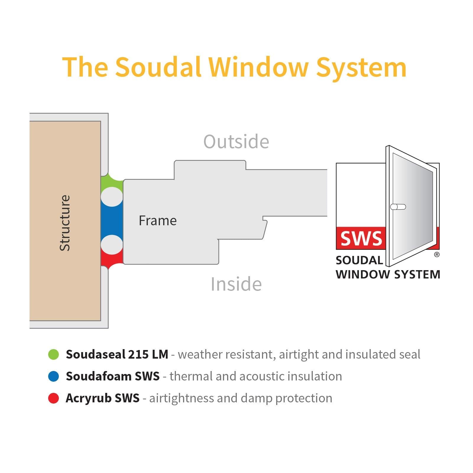 What is Soudal Window System (SWS)? The primary function of SWS MIDDLE products is to improve the acoustic and thermal performance of the window or door connection joint. These products help reduce the transmission of noise and vibrations through the building envelope while limiting thermal exchange between the interior and exterior. This results in enhanced indoor comfort and lower energy consumption to maintain the desired temperature.