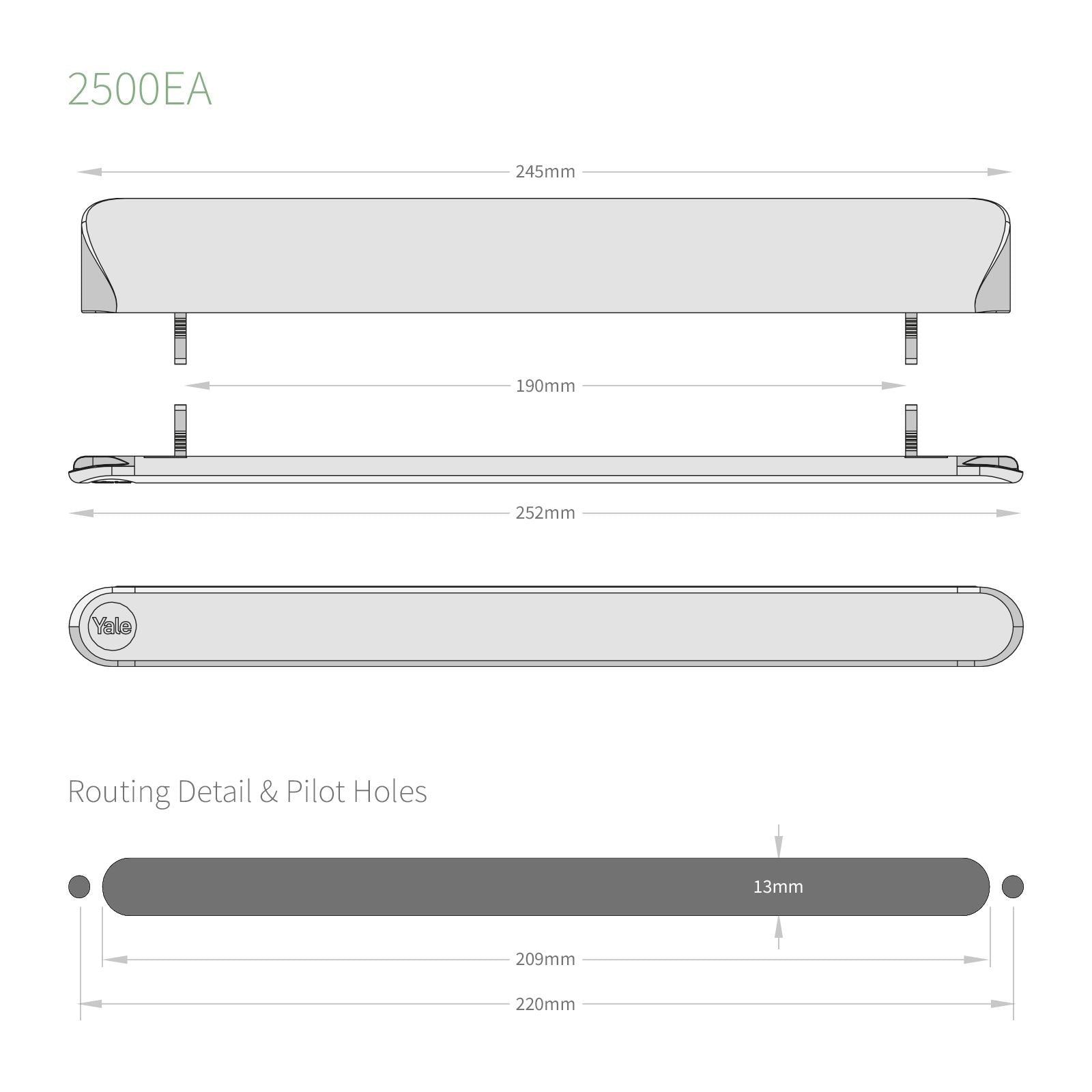 | 2500EA Vent Size | Exterior Hood = 245mm x 21mm x 30mm** Interior Vent = 252mm x 21mm x 7mm** Cutout = 209mm x 13mm Fixing Centres = 220mm |