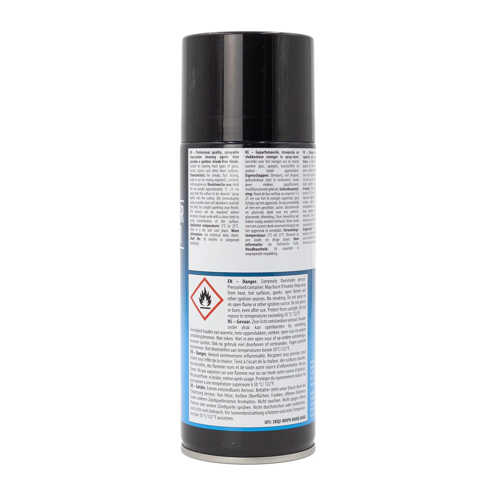 Foil Safe Spray Cleaner removes ingrained dirt and adhesive residues without dissolving or smearing, making it suitable for sensitive foil-laminated and lacquered surfaces. Glass & Mirror Cleaner delivers a streak-free finish on glass, plastics, and hard surfaces by using a fast-evaporating, ready-to-use formula. Silicone Spray provides light lubrication, water repellence, and electrical insulation using high-grade silicone oil, improving the operation and longevity of moving parts and seals.