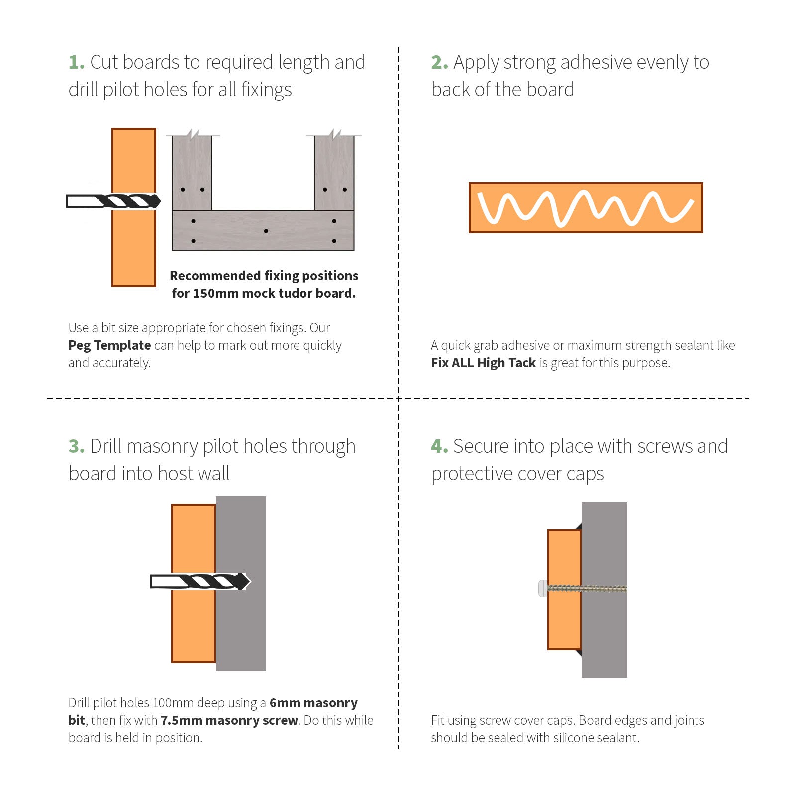 9" wide (225mm x 27mm x 4.2m) replica wood plank in authentic black woodgrained finishes. Long-lasting and low-maintenance polyurethane board for new builds and replacement of existing rotting mock Tudor board.