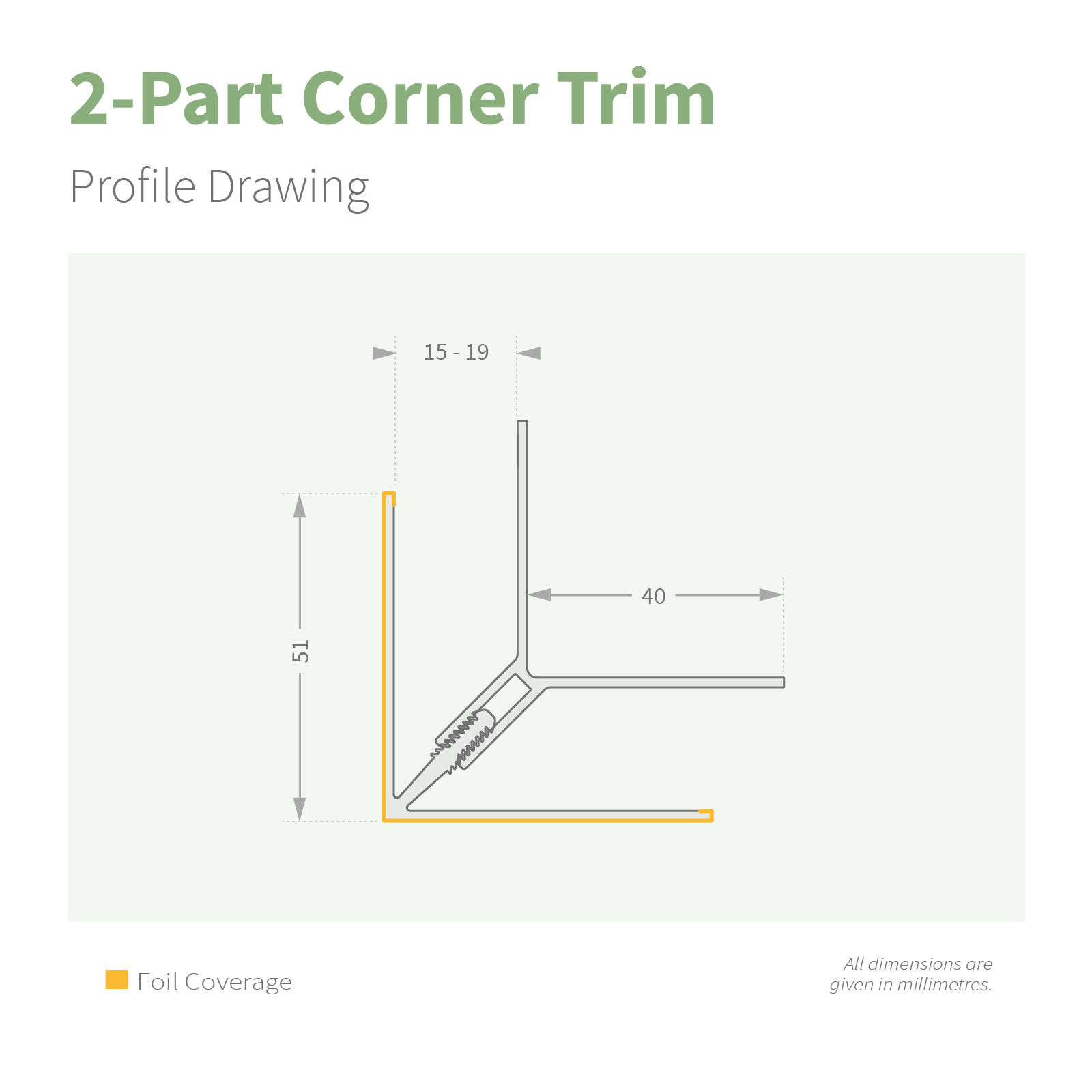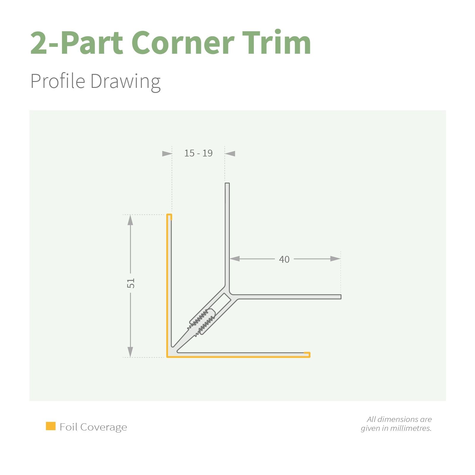 Two-part PVC-U cladding board trim, for providing a neat protective finish to outward-facing 90° corners. The click-fit design allows the rear part to be fitted first, followed by the NatureClad boards, then the front cover is knocked into place.