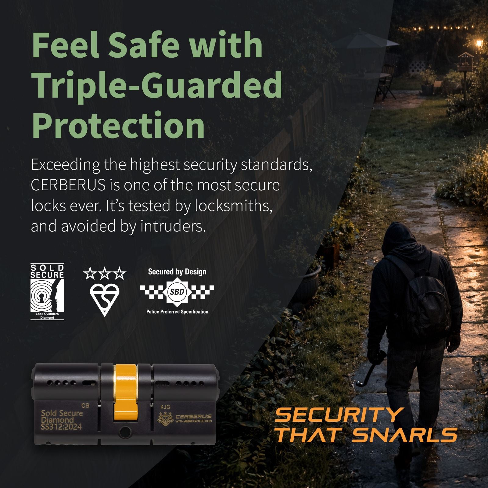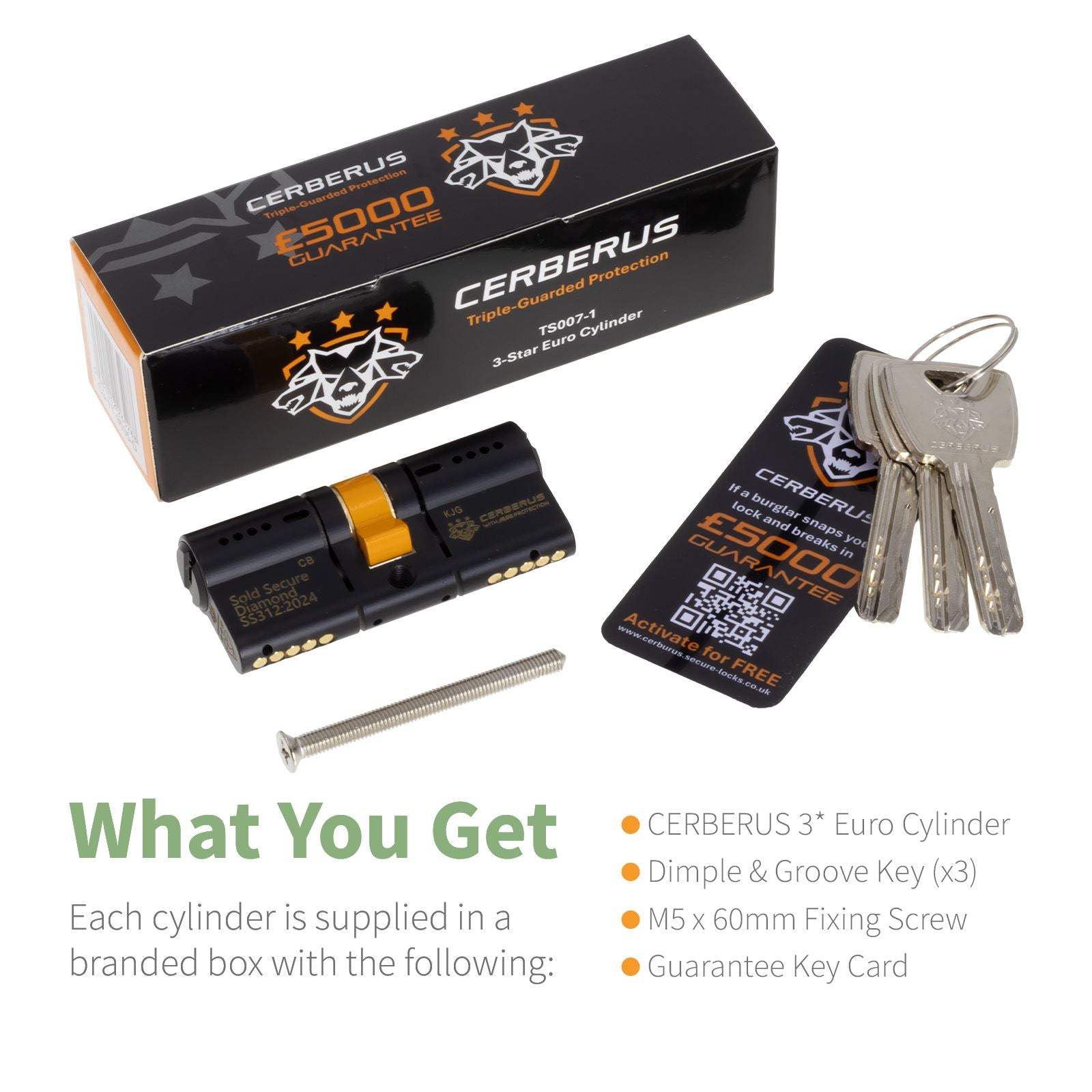 Its stylish matt black face incorporates the recognisable CERBERUS logo and 3-star kitemark, as visual deterrents to any would be thief.