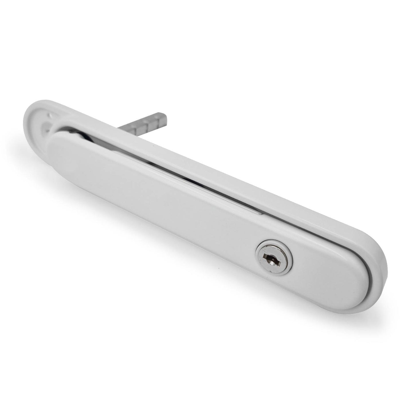 Strong and stylish low profile handle with durable finish for intermediate panels of aluminium Bi-fold doors. Features a neat fold down lever that conceals discreet key storage, and allows open doors to stack tightly, to maximise the open space.