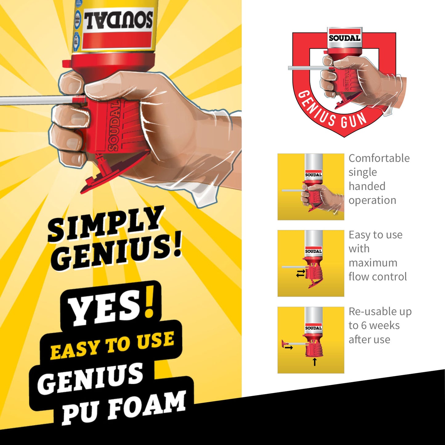 DID YOU KNOW? Soudafoam Gap Filler is available in Gun Grade form for gun applicators, and Genius Gun, which features a trigger mechanism of its own for precise one-handed application and a built-in closing system for re-use.