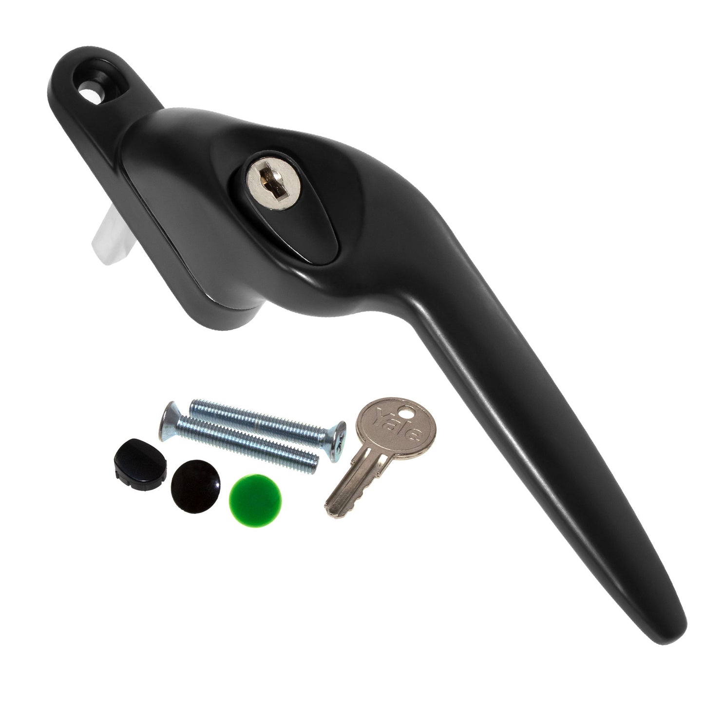 Stylish and strong, lockable cranked window handle for aluminium and uPVC espagnolette windows. Manufactured by industry leader Yale, and supplied with a 10-year mechanical and surface guarantee.