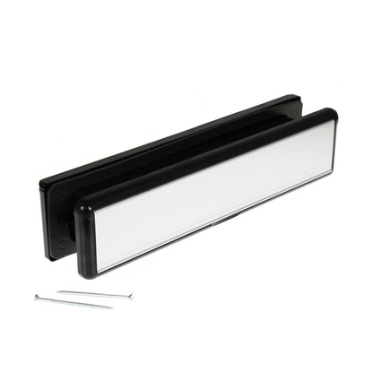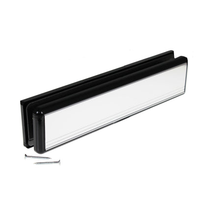 Complete letterplate with aluminium flaps on moulded ABS plastic frames to the inside and outside. Although commonly referred to as 12" in the trade, this letterplate actually measure 11.9" (304mm x 70mm) and provides an attractive finish to any door. Telescope sleeves mean it can be easily fitted to doors between 20mm and 80mm thickness.